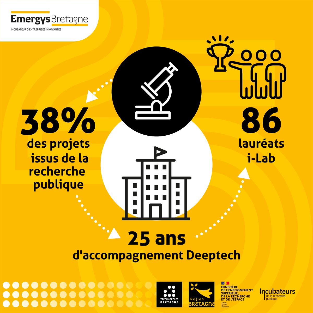 Retrouvez tous les chiffres publiés à l’occasion de la campagne anniversaire des 25 ans d’Emergys Bretagne sur le LinkedIn des 7 Technopoles Bretagne.